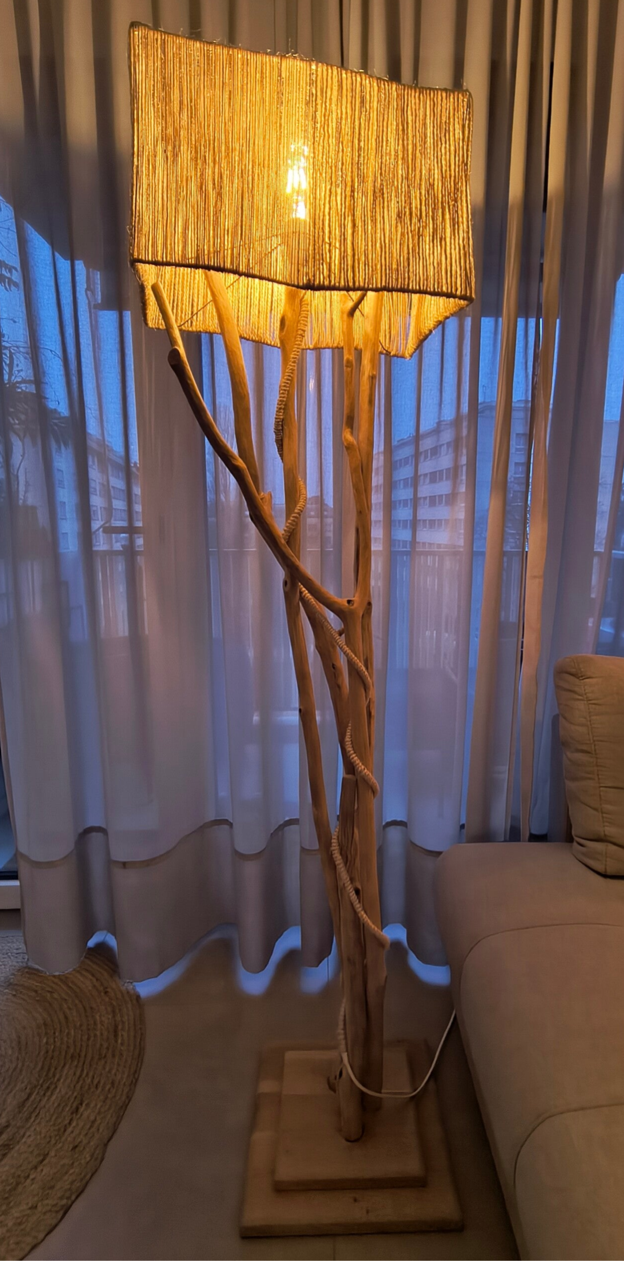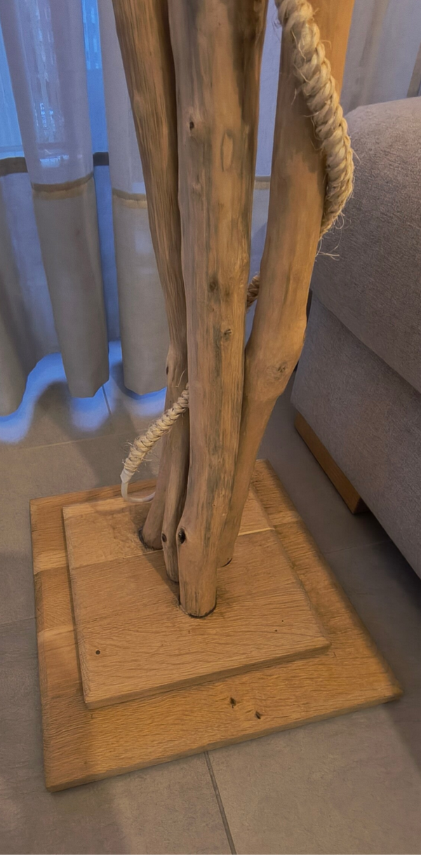 Abat jour en corde. Pied en chêne massif. Tout fait main.